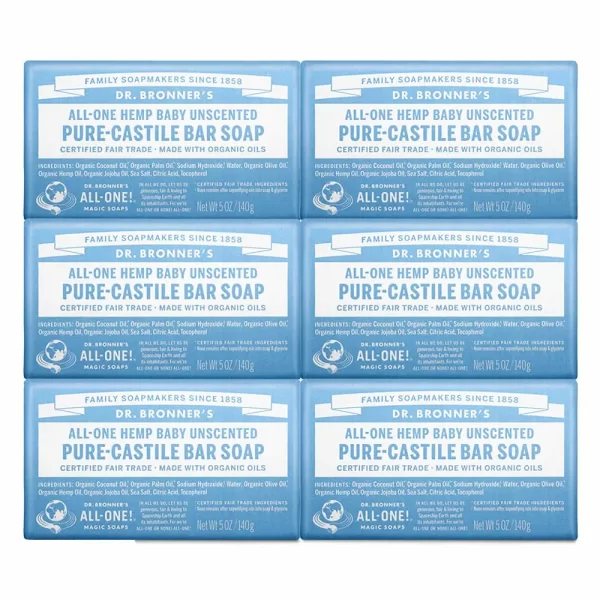 Dr. Bronner’s Pure Castile Bar Soap (Unscented, Vegan)